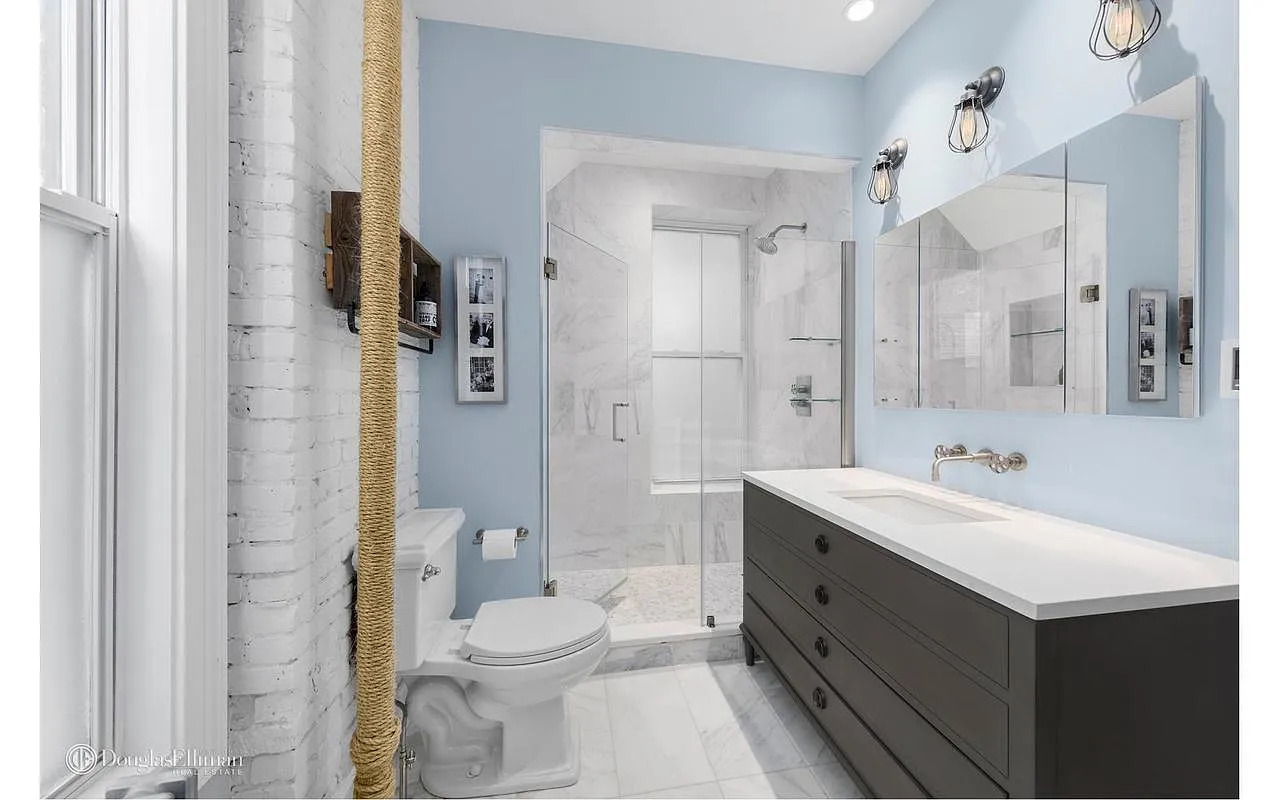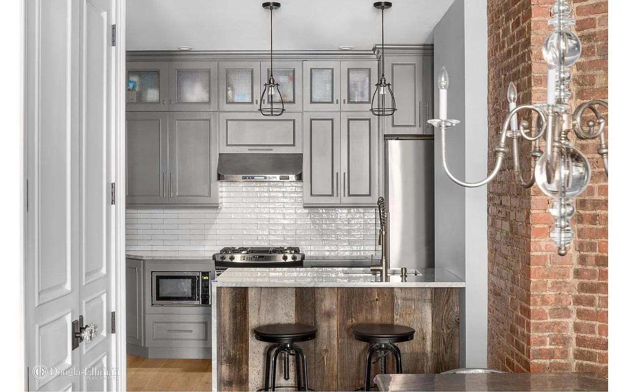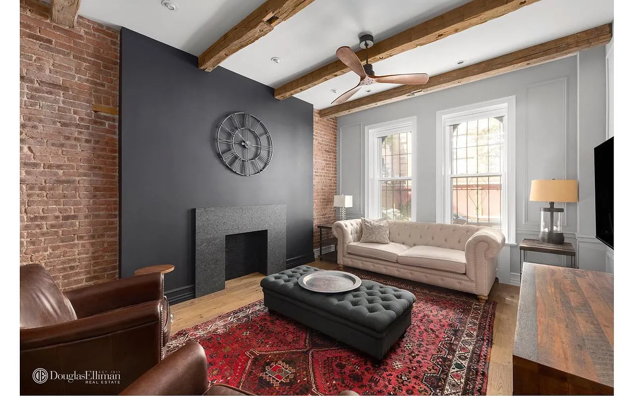 This long-neglected, ground-floor brownstone apartment on the Upper West Side underwent a complete transformation. The owners purchased the unit intending to gut and reconfigure the outdated two-bedroom, one-bathroom layout. The renovation, which took 15 months, presented significant challenges due to strict Department of Buildings (DOB) requirements for a main-floor unit and the apartment's narrow, constrained footprint. Interior designer Philip Nadeau of DDL Studios collaborated closely with the owners, architect, and expeditor to navigate these obstacles and secure necessary permits, ultimately achieving an approved, functional three-bedroom, two-bathroom layout. Key design elements include new engineered oak hardwood flooring, antique solid wood barn beams on the living room ceiling, and modern wall trim painted to match the walls for a chic, subtle effect. The kitchen features a dramatic contrast with dark charcoal cabinetry against light marble countertops. The original 100-year-old brickwork, previously covered, was exposed to introduce a rustic feel. The master bathroom boasts marble tile walls and floors, along with radiant in-floor heating. A favorite feature of the owners is the whisper-quiet central air conditioning system, which also provides heat. The completed apartment is now an ideal space for entertaining and raising their two children, a testament to a highly successful project despite the complexities of renovating in NYC. Special thanks are extended to Philip Nadeau for his design expertise.